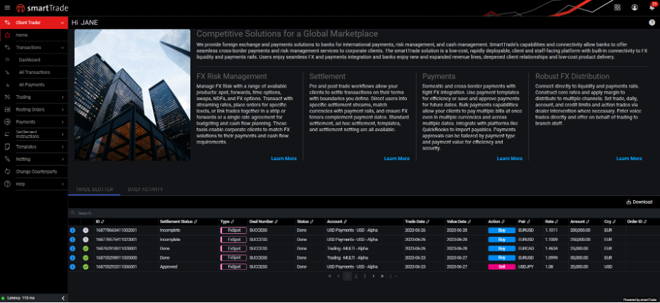 CBP provides a class-leading FX and payments platform with end-to-end functionality that enables banks to provide an integrated cross-border payment experience without compromise. Access liquidity and payment execution while presenting clients with a rich menu of FX and payments options that can be tailored to a wide range of users and use cases. CBP is designed to integrate cleanly and quickly with the infrastructure you have to enable the experiences your clients demand.