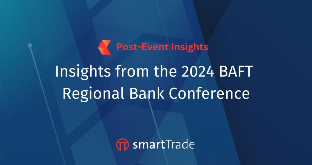 The smartTrade team attended this year’s BAFT Regional Bank Conference held in Chicago. The event caters to bankers from institutions with less than $250 billion in assets. While US banks comprise the bulk of attendees, attendance was open to regional banks wherever they are based and there were participants from around the globe in attendance for networking, discussion and collaboration on FX, trade finance, payments, regulatory and other issues affecting member banks. smartTrade’s Director of Payments, Chris Gibson, participated in a panel discussion on the future of payments alongside Sue-Ellen Speight from StoneX and Steve Douglass of The Clearing House and hosted by Yenner Karto of First National Bank of Pennsylvania.