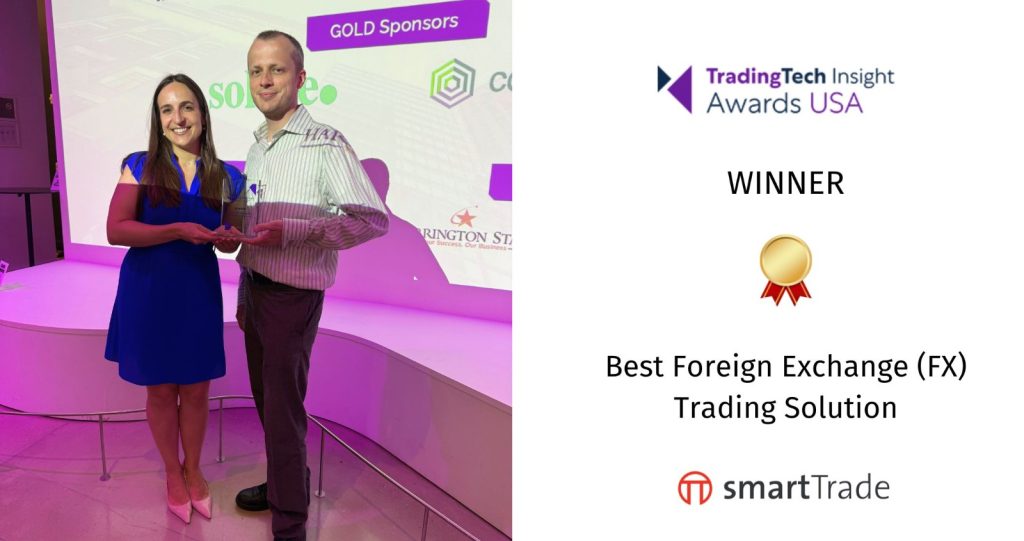We are delighted to announce our award recognition at the 2025 TradingTech Insight Awards USA. smartTrade has received an award for ‘Best Foreign Exchange (FX) Trading Solution’.