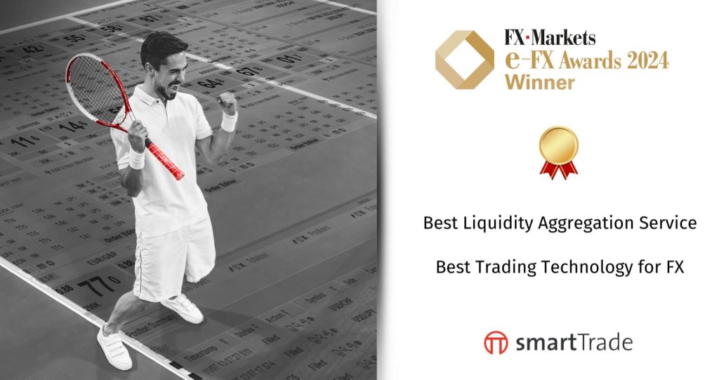 London – July 11th, 2024 – smartTrade Technologies, the leading provider of multi-asset trading and payments solutions, is pleased to announce its recent recognition at the 2024 FX Markets e-FX Awards. The company has received awards for ‘Best Liquidity Aggregation Service’ and ‘Best Trading Technology for FX’, underscoring its outstanding capabilities in the FX market.